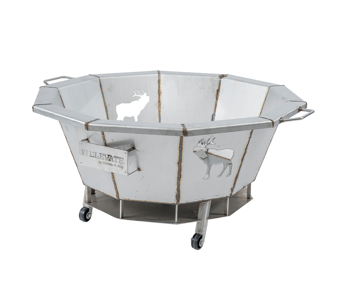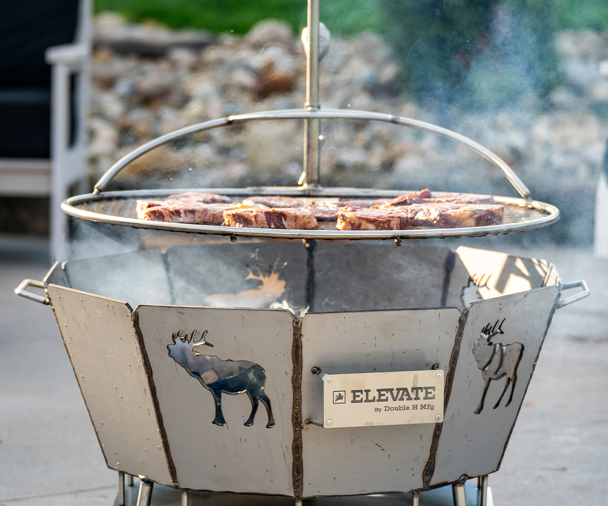 The Elevate Elk Cutout Fire Pit isn’t just a fire pit—it’s a centerpiece for connection. Crafted by Double H Manufacturing in Fresno, Ohio, each unit features custom cutouts and is made from heavy-duty stainless steel, offering unmatched durability, style, and function.