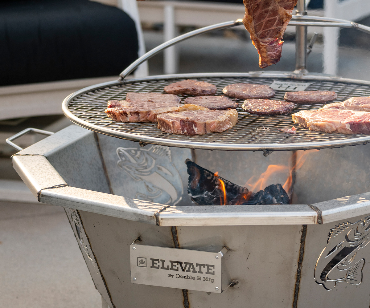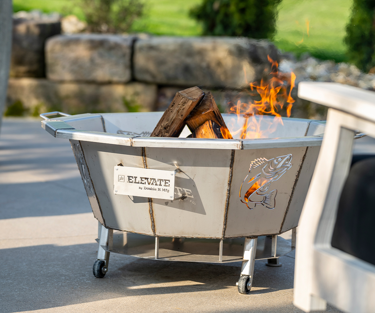 The Elevate Walleye Cutout Fire Pit isn’t just a fire pit—it’s a centerpiece for connection. Crafted by Double H Manufacturing in Fresno, Ohio, each unit features custom cutouts and is made from heavy-duty stainless steel, offering unmatched durability, style, and function.