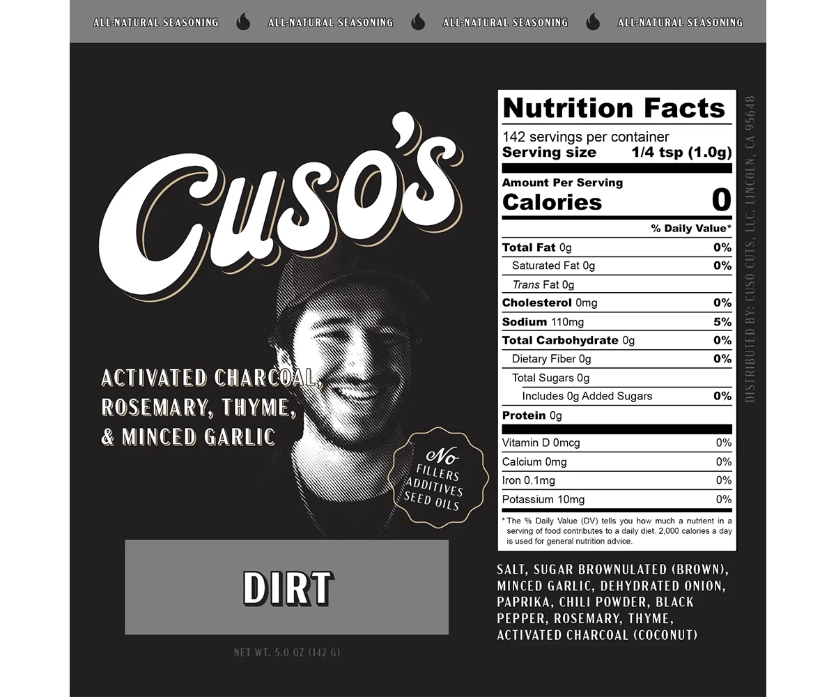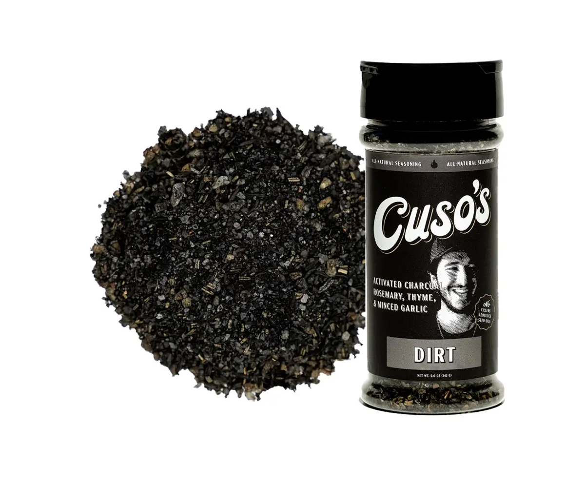 Elevate your cooking game with Cuso’s Dirt®, the ultimate all-natural seasoning blend that’s as bold as it is versatile. Crafted with premium ingredients like salt, brown sugar, minced garlic, dehydrated onion, paprika, chili powder, black pepper, rosemary, thyme, and activated coconut charcoal, Dirt® delivers a rich, smoky flavor with a hint of sweetness and a touch of earthy depth.