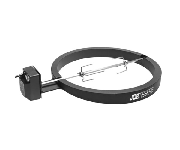Revolutionize your charcoal grilling experience and transform your Kamado Joe into a rotisserie-style grill with the JoeTisserie attachment. Constructed from durable, 304-grade stainless steel, the spit rods and forks allow for pristine balance and steady rotation of up to 50-pounds of beef, pork or chicken resulting in meats that are smoky, juicy, and tender . The quiet, yet powerful, 120V motor provides a steady circulation for flawless food.
